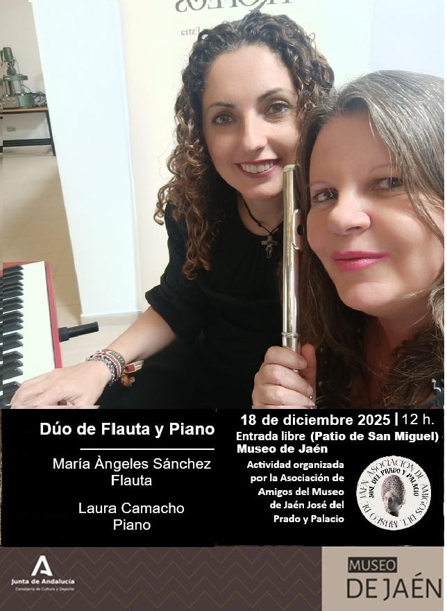 - Dúo de Flauta y Piano. María Ángeles Sánchez (Flauta) y Laura Camacho (Piano). 18 de diciembre de 2025, 12 h. Patio de San Miguel (Museo de Jaén).