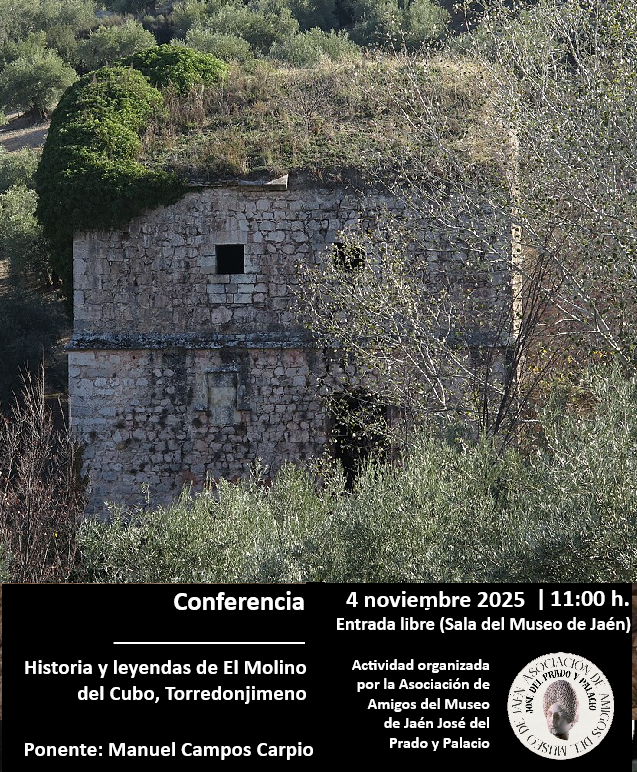 - Conferencia: martes, día 4 de noviembre 2025, a las 11 h.: «Historia y leyendas de El Molino del Cubo, Torredonjimeno«. Ponente: Manuel Campos Carpio. Lugar: Sala del Museo de Jaén (Ver conferencia).